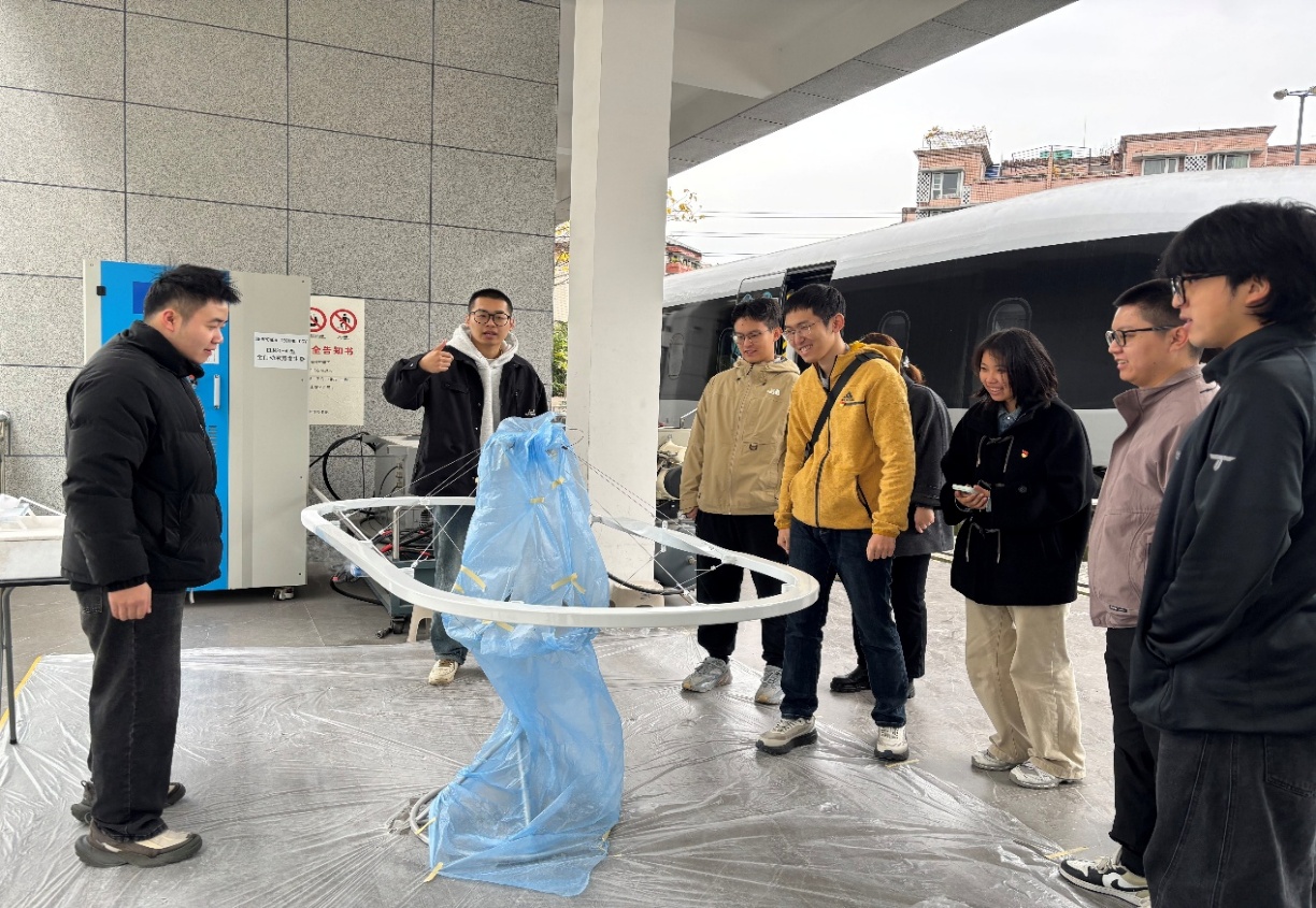 在参观环节,新超所师生共建党支部副书记吕冲和支部党员向利兹学院博士生党支部介绍了高温超导磁悬浮列车及试验线。随后,两个支部在明诚堂二楼会议室开展了分享会。吕冲谈到,自入选“强国行”专项行动以来,支部深入了解党情、国情、社情、民情,深刻认识新时代党和国家事业取得的历史性成就、发生的历史性变革,围绕党建联建、教育服务、科技赋能、实践育人等开展了系列活动,全面增强了党支部的政治功能和组织功能。未来,全体党员力争把支部建设成为政治素质过硬、专业特点鲜明、师生联合共建的特色“双带头人”党支部,为学校基层党支部建设提供案例和参考。利兹学院博士生党支部书记刘爽谈到,作为基层党支部,要引领师生在科研工作与社会服务中发挥先锋模范作用,为强国建设、民族复兴作出更大贡献。双方支部党员就支部建设、活动组织、科研学习、联建共建等方面进行了深入交流。