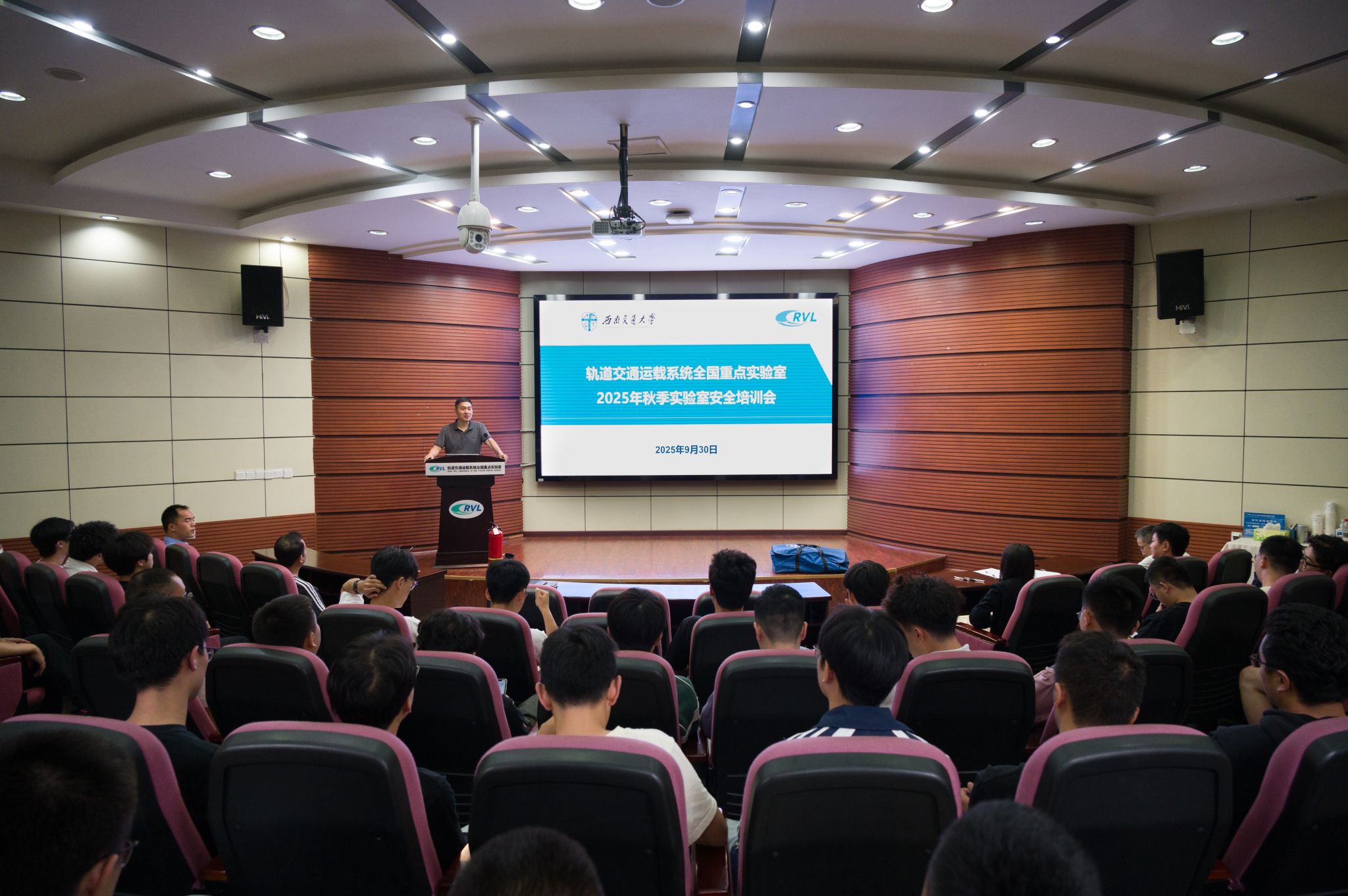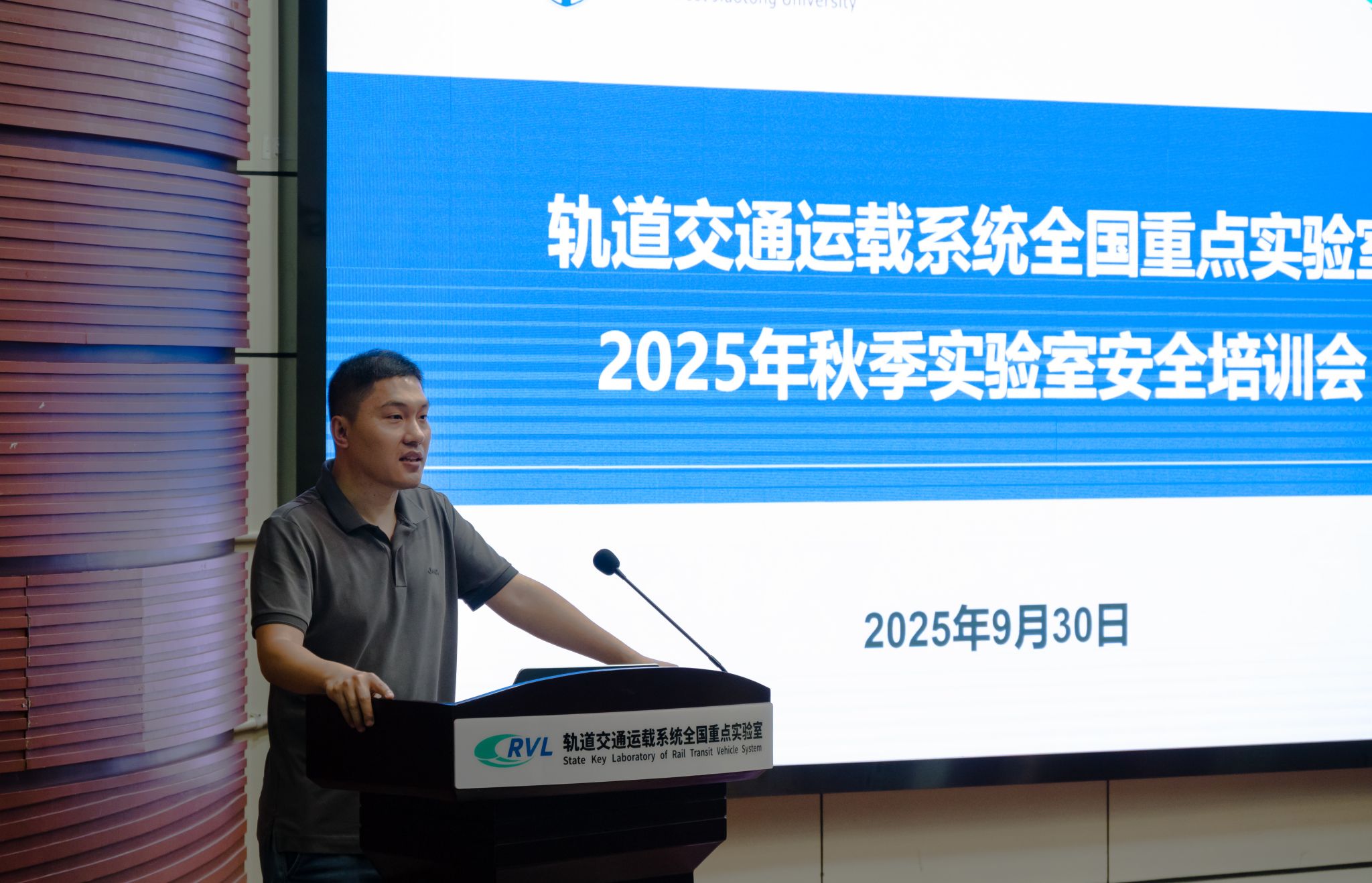 为深入学习贯彻习近平总书记关于安全生产的重要论述和重要指示批示精神,坚持统筹发展与安全,推动消防安全治理模式向事前预防转型,切实提升全员消防安全意识和自防自救能力,9月30日下午,轨道交通运载系统全国重点实验室2025年下半年消防安全培训在A1楼218会议室举行。本次培训会特邀四川建安消防中心的陈世扬教官作为主讲,实验室副主任敬霖、安全管理员何健、各试验台长、装备与运行保障办公室全体老师、辅导员陈宇豪以及2025级研究生参加了培训,会议由安全管理员何健老师主持。