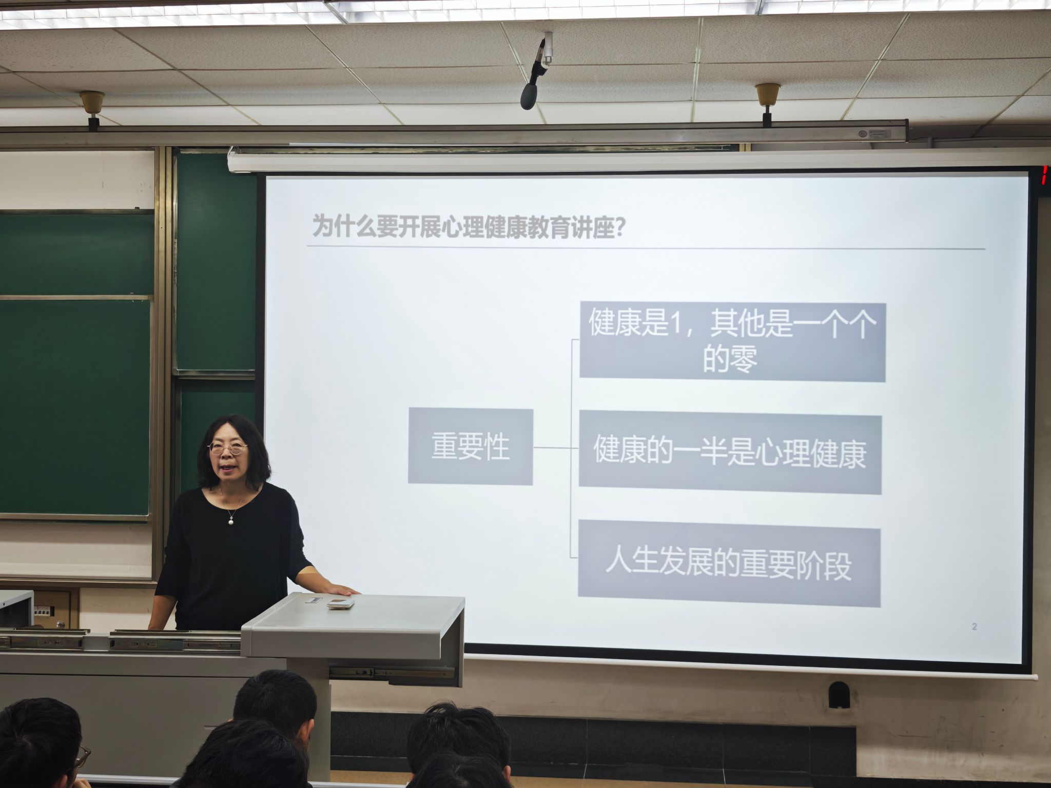讲座中,何立群老师以生动比喻开篇,用 “健康是 1,其他外在条件都是 0,而健康的一半是心理健康”,直观阐明研究生阶段关注心理健康的重要性,强调唯有守住心理健康,才能稳步推进后续的学业、科研与生活。