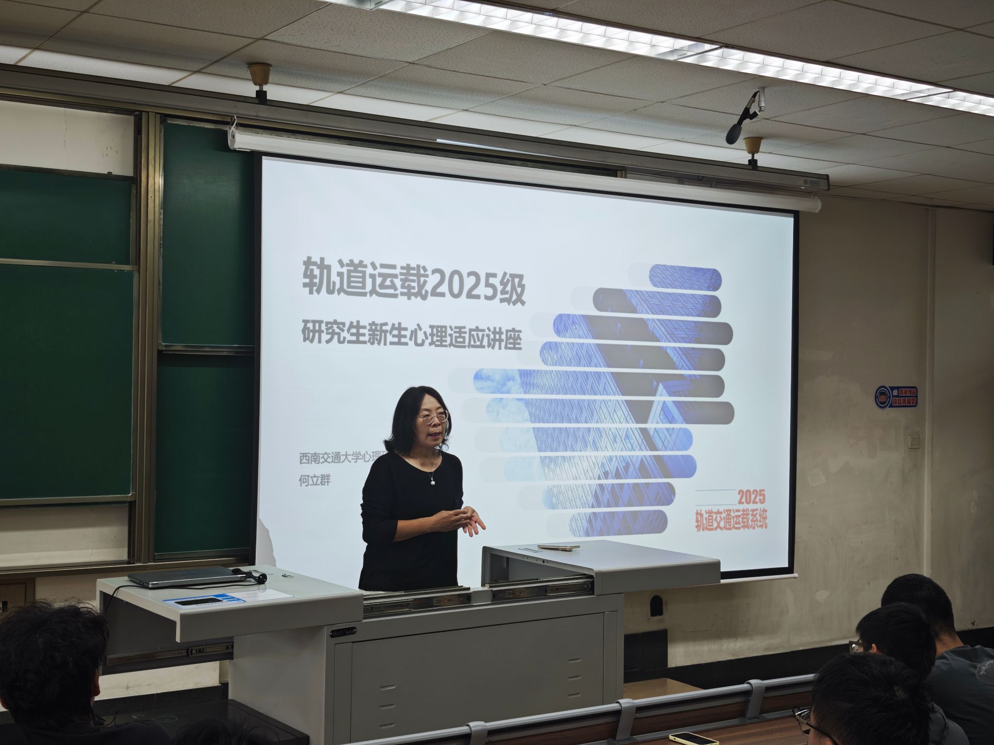 为筑牢新生心理健康防线,帮助大家更好地适应新的学习与科研环境,轨道交通运载系统全国重点实验室于10月16日下午3点50分在J4509开展新生心理适应讲座活动。活动特邀学校心理研究与咨询中心何立群老师主讲,实验室新生辅导员陈宇豪、心理工作专项负责人申宇参与,2025 级全体硕博新生参会。